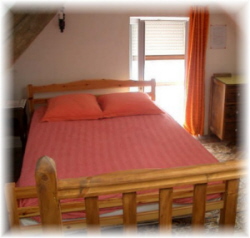 Through a steep but original wooden staircase with 12 steps is the bedroom with a double bed, extra wc and washbasin and good furniture, Velux and double glazed window with an electric operated blind.